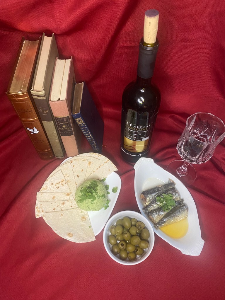 Olives are a must-have. These cleans the palate between bites so that you don’t get too overwhelmed and can enjoy all the flavor notes. And, again, olives would have been on the menu for both Dante and Virgil.