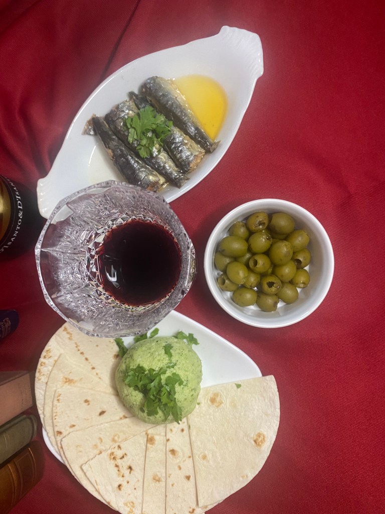 Paired with the sardines, you get a very satisfying (and satiating) bite. If the fishy flavor of sardines normally puts you off, you’ll like it with a little moretum! I still knew I was easting fish, but you get more of the fresh sea essence than fish. And, again, it goes beautifully with the wine!