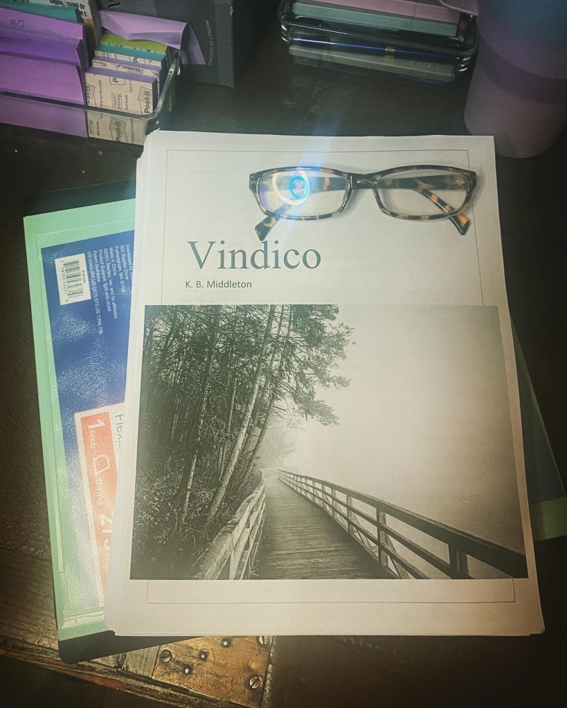 What’s a writer to do? I’m taking the approach of allowing whatever my characters want in the moment to be. I can always trim or refine when I start truly editing the novel, but until then, I’m going to let them do whatever they wish to do. It’s working out even better than I hoped and things I’d thought would not fit into Vindico are making sense and fit.